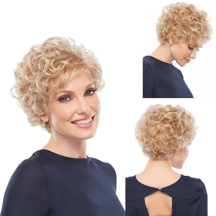 2019 Casual Style Fluffy Tilt Curly Vogue Blonde Short Haircut Wig
