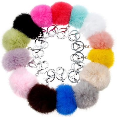 25colors With Chain 8cm Fake Rabbit Fur Pom Pom Ball Keychain